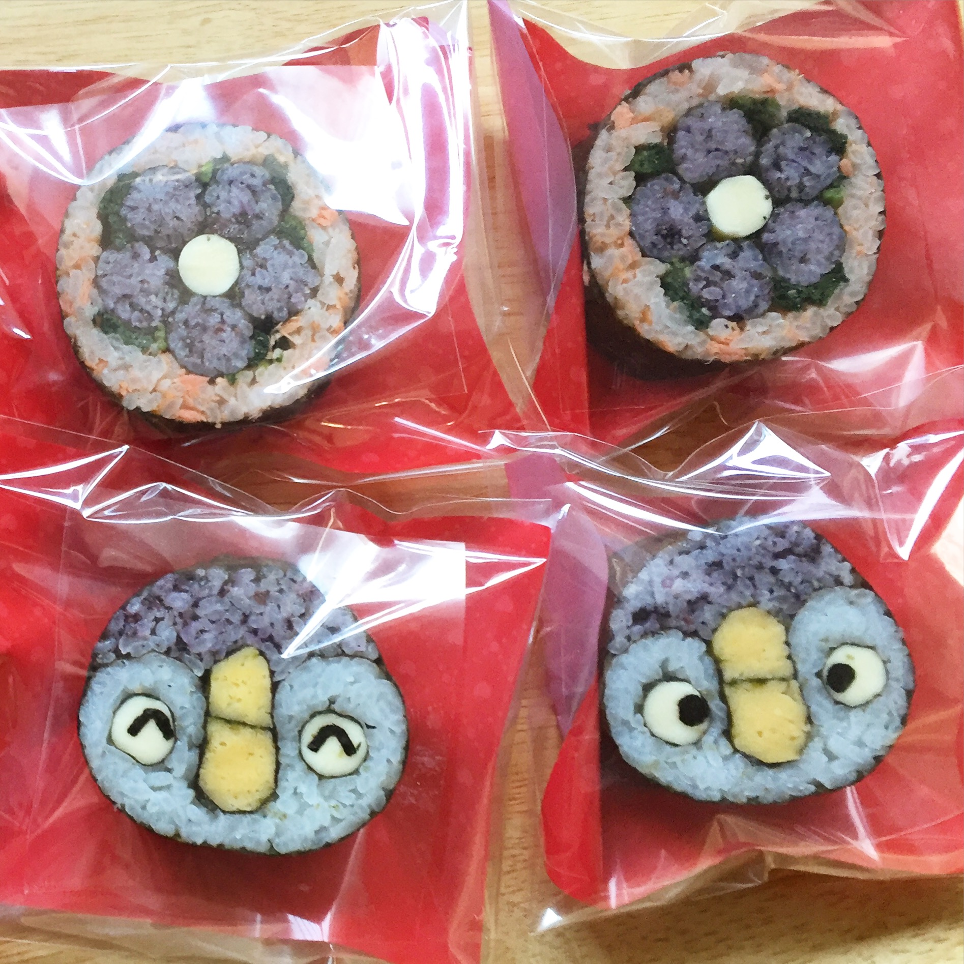 ps.デコ巻きずし、ちょっとラッピングしてみました♪裏表フィルムを貼っているので乾燥しにくくなっています♪