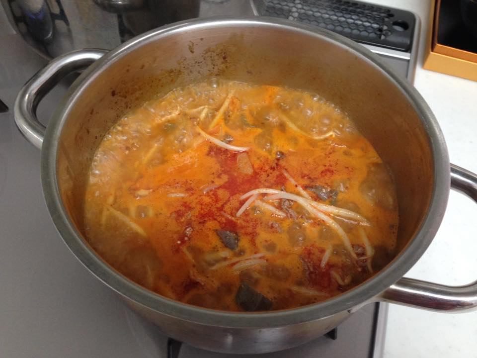 本日の昼ごはん、やっとユッケジャンの素を使ったランチです。