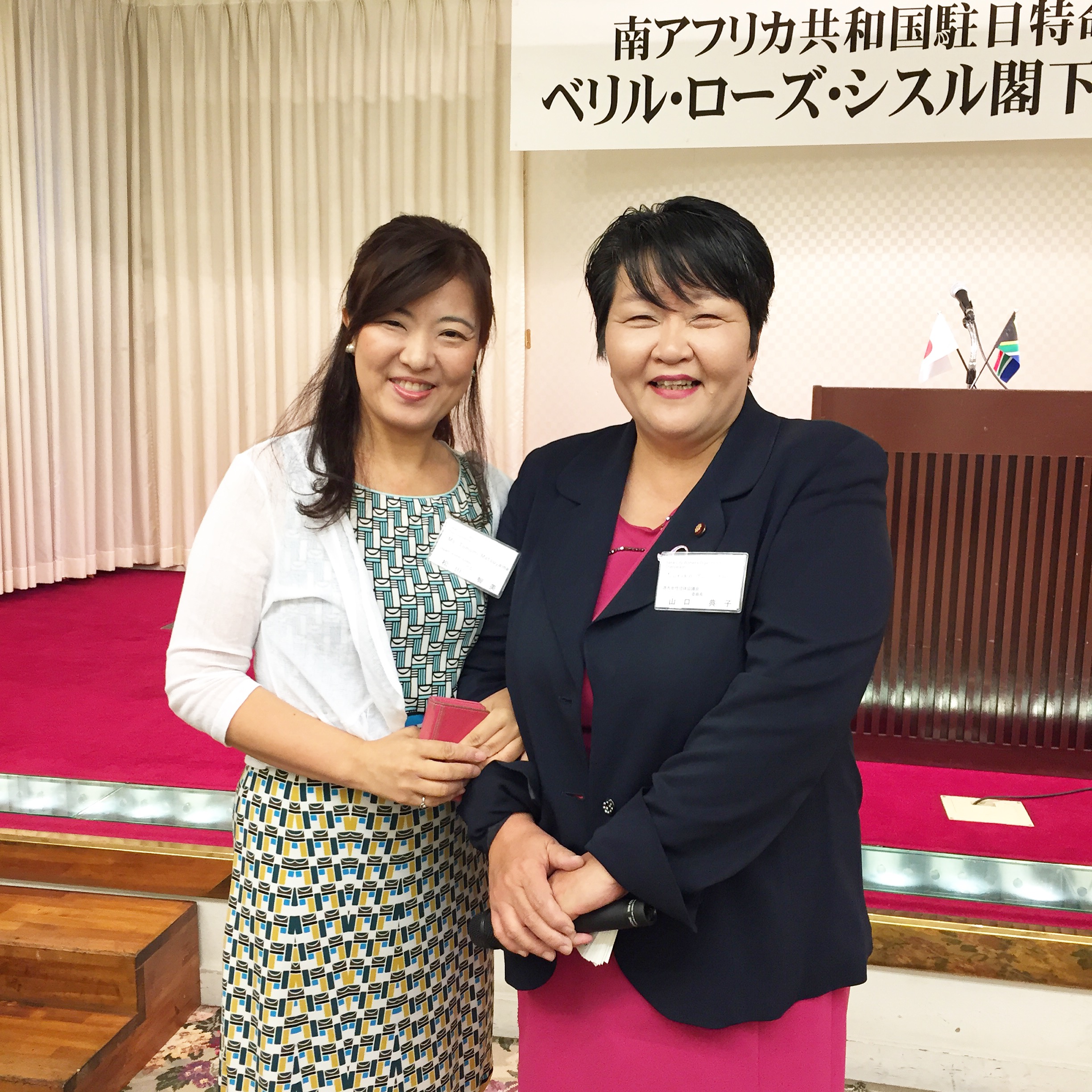 先日お世話になりました、堺市議会議員山口 典子先生が代表を務められる、堺女性団体協議会様主催の、南アフリカ共和国駐日特命全権大使 ベリル、ローズ、シスル閣下 歓迎懇親会に 参加させて頂きました(*´艸`*)